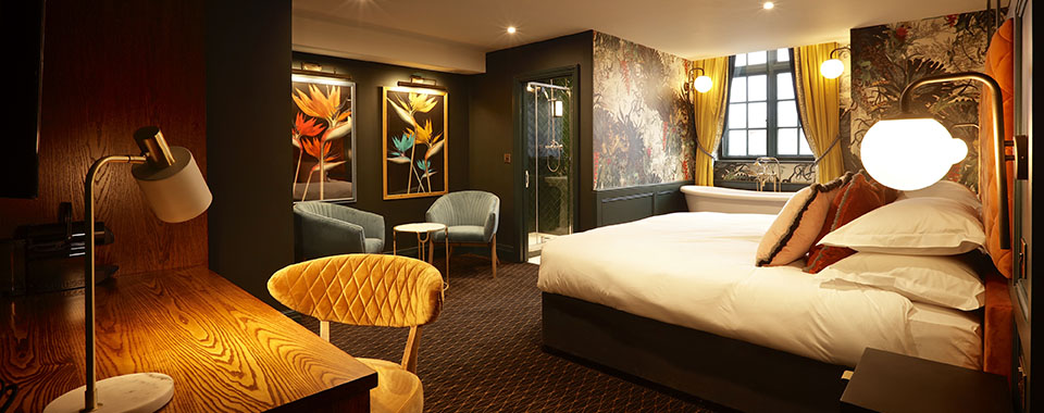 Our individually designed bedrooms add another layer of luxury. Expect Hypnos beds, Egyptian cotton linen, roll top baths, rain showers and bespoke artwork for a truly memorable stay.
